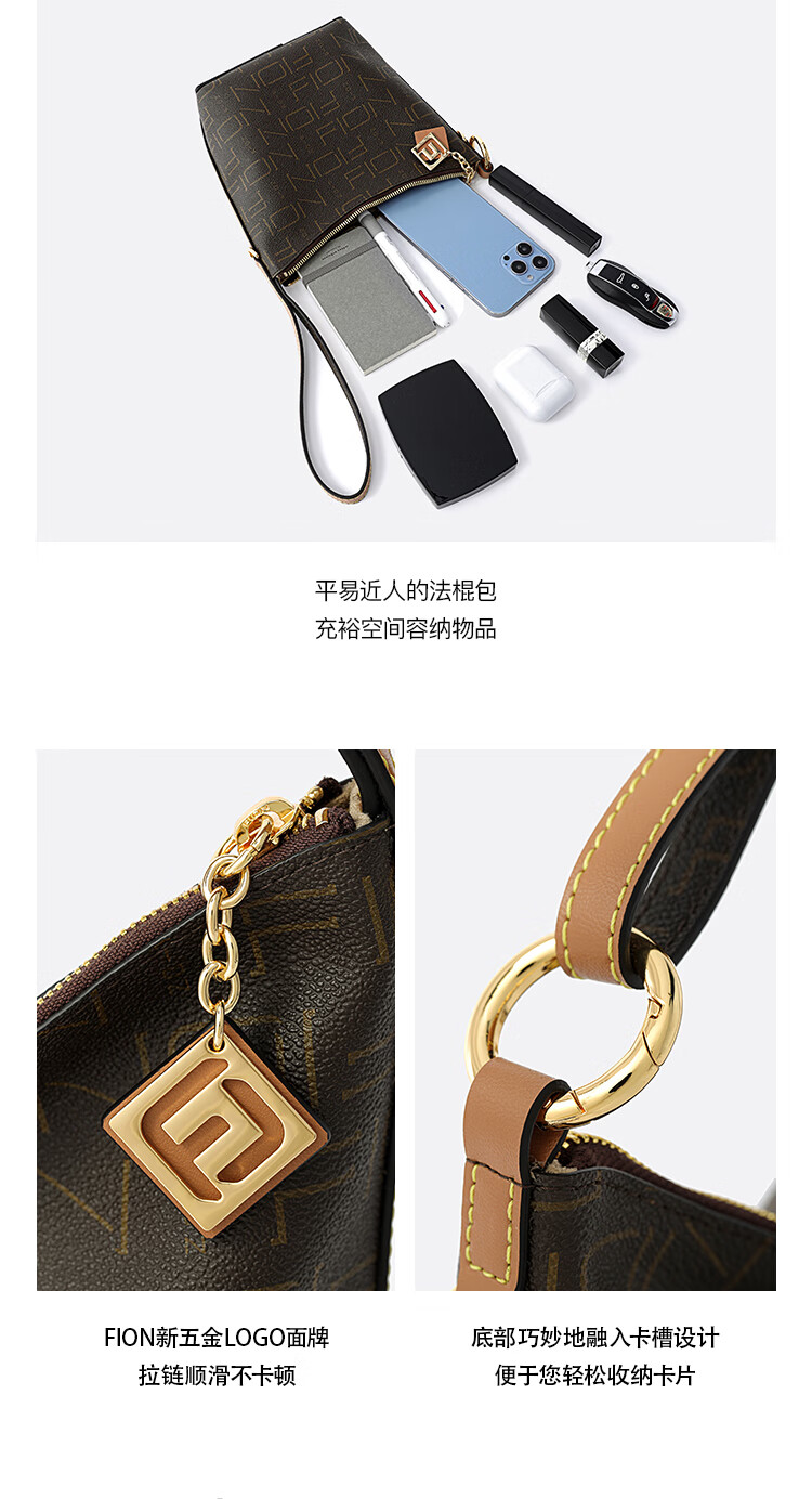 菲安妮(FION)经典老花单肩包包2024新款百搭轻奢斜挎包女 送老婆女友礼物