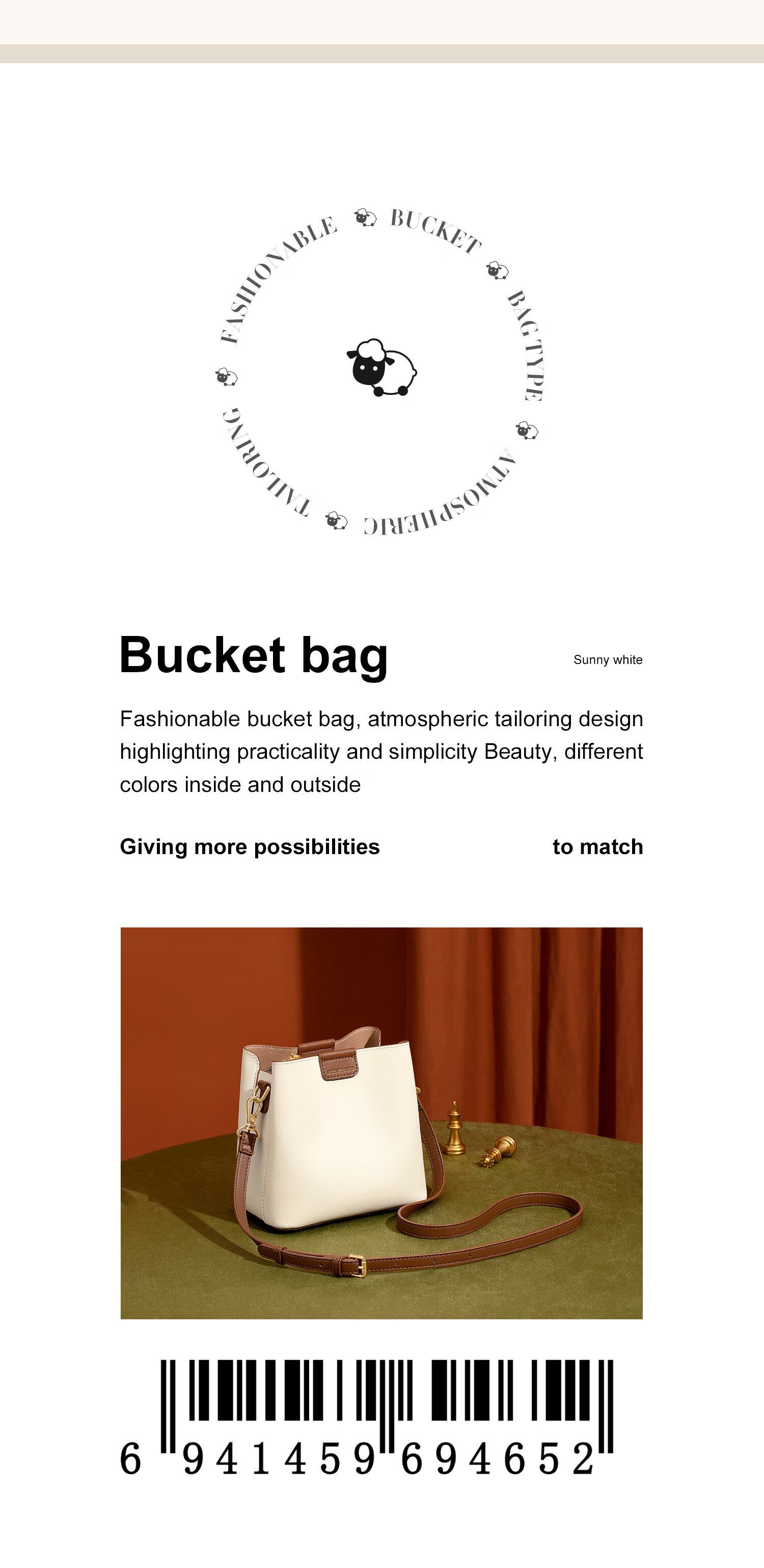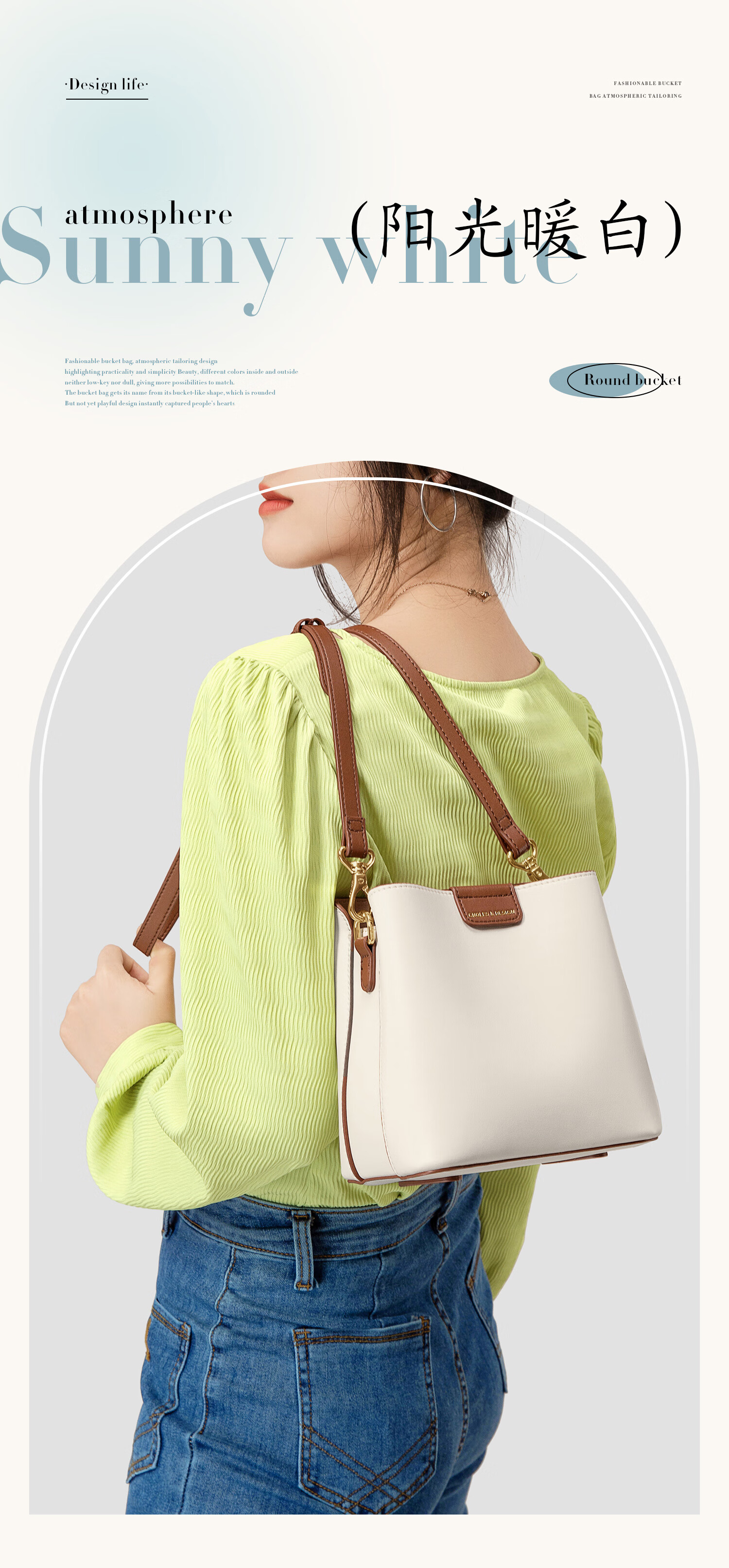 蔻一(Cnoles)水桶包女士包包牛皮单肩包女款高端品牌大容量斜挎包女式百搭背包实用走心生日礼物送女朋友老婆 阳光暖白