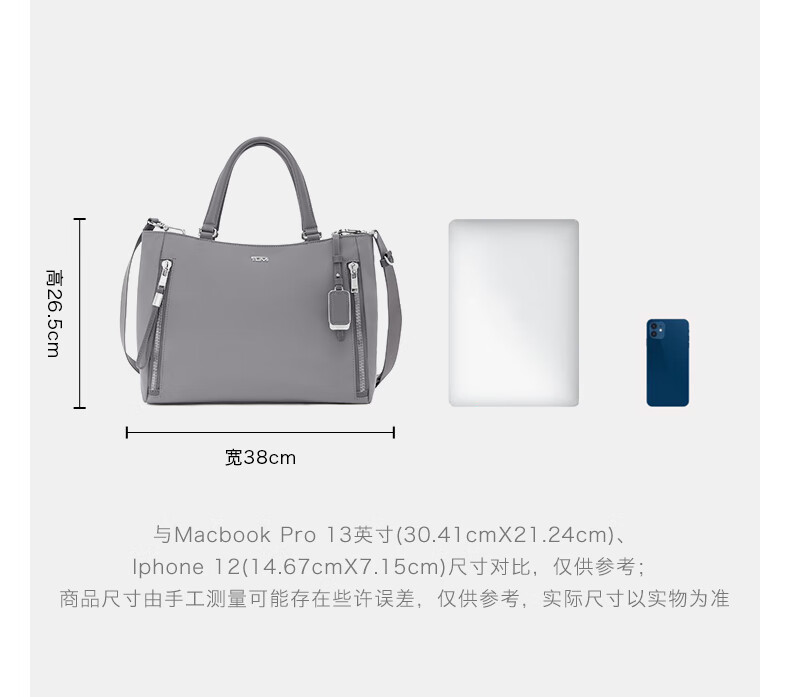 TUMI/途明【品牌甄选】Voyageur系列简约精致女士中号手提托特包 雾霾灰/0196605FG